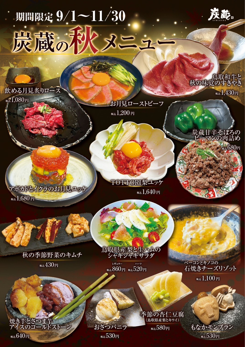 炭蔵では現在、季節限定の「秋メニュー」をご提供しております!